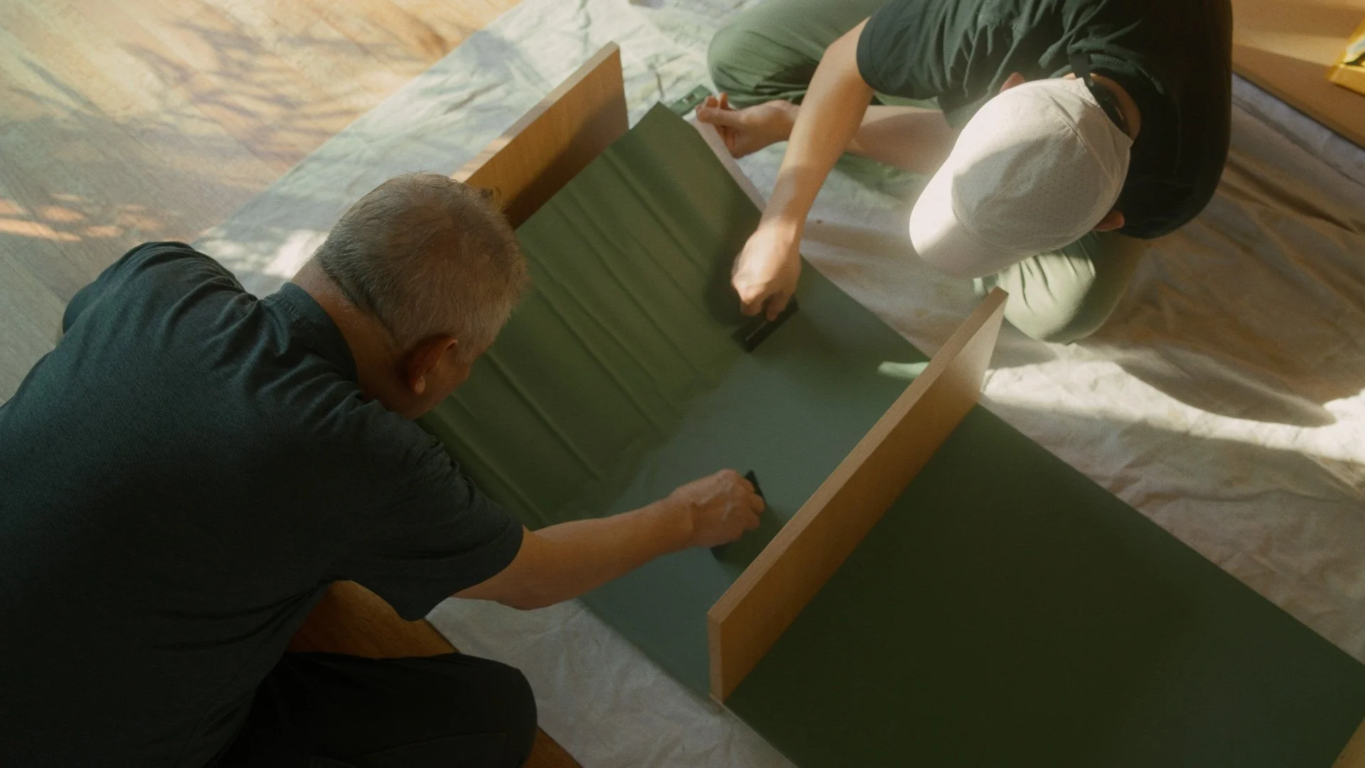 I’d never used vinyl like this before, and the first attempt went badly. Wrinkles, bubbles, and then I tore it. We started over, went slower, and the second attempt worked.