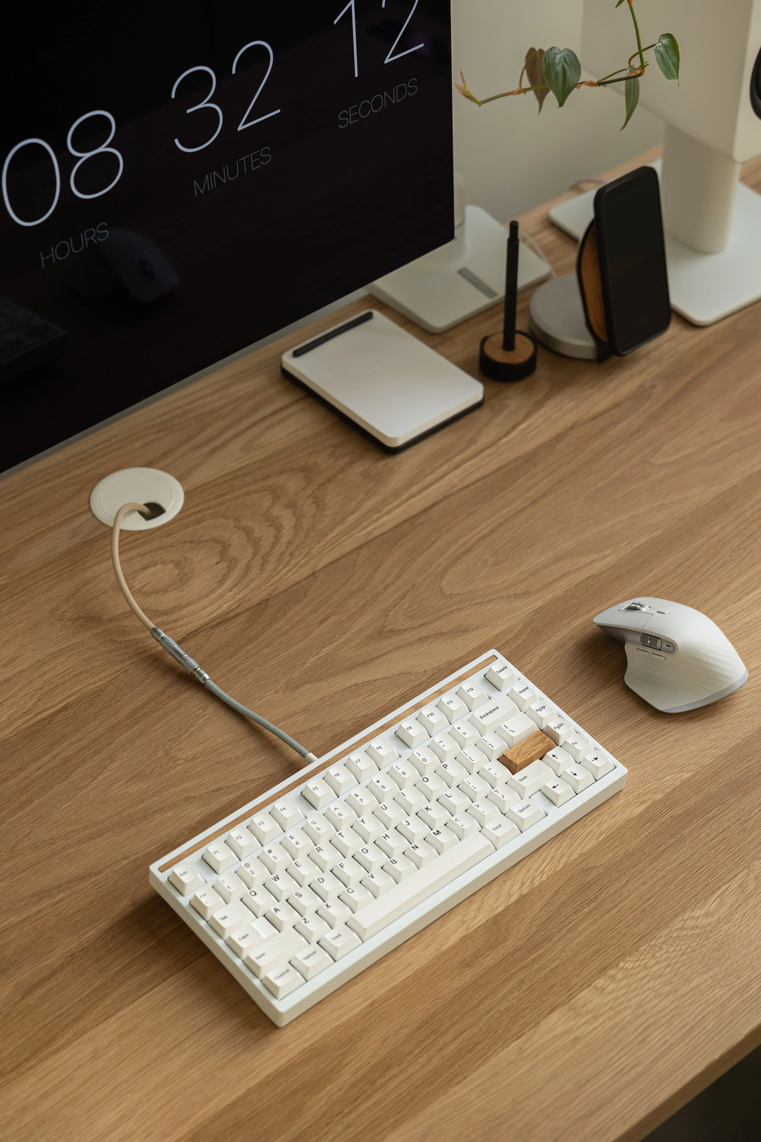 Mod Musings teamed up with Mode Designs to create the Special Edition White Oak Accent for the Sonnet keyboard. It combines industrial and organic materials to bring an air of warmth and sophistication to your desk.