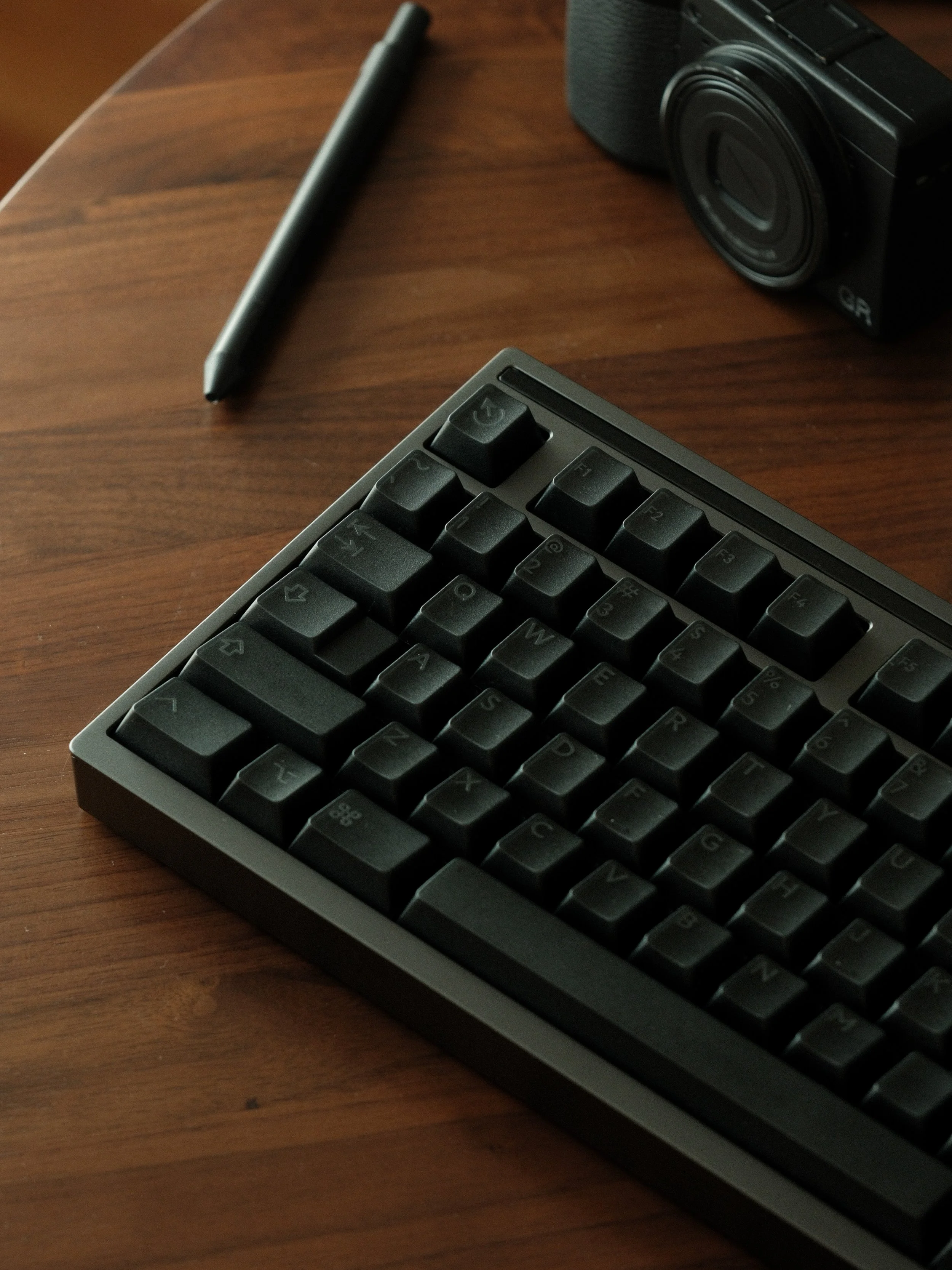 Thermal follows X-Ray Keycaps, carrying forward the same translucent-tech idea, only inverted. Where X-Ray is bright and translucent, Thermal shifts to smoky blacks and muted gray translucency, letting light and shadow do the work.