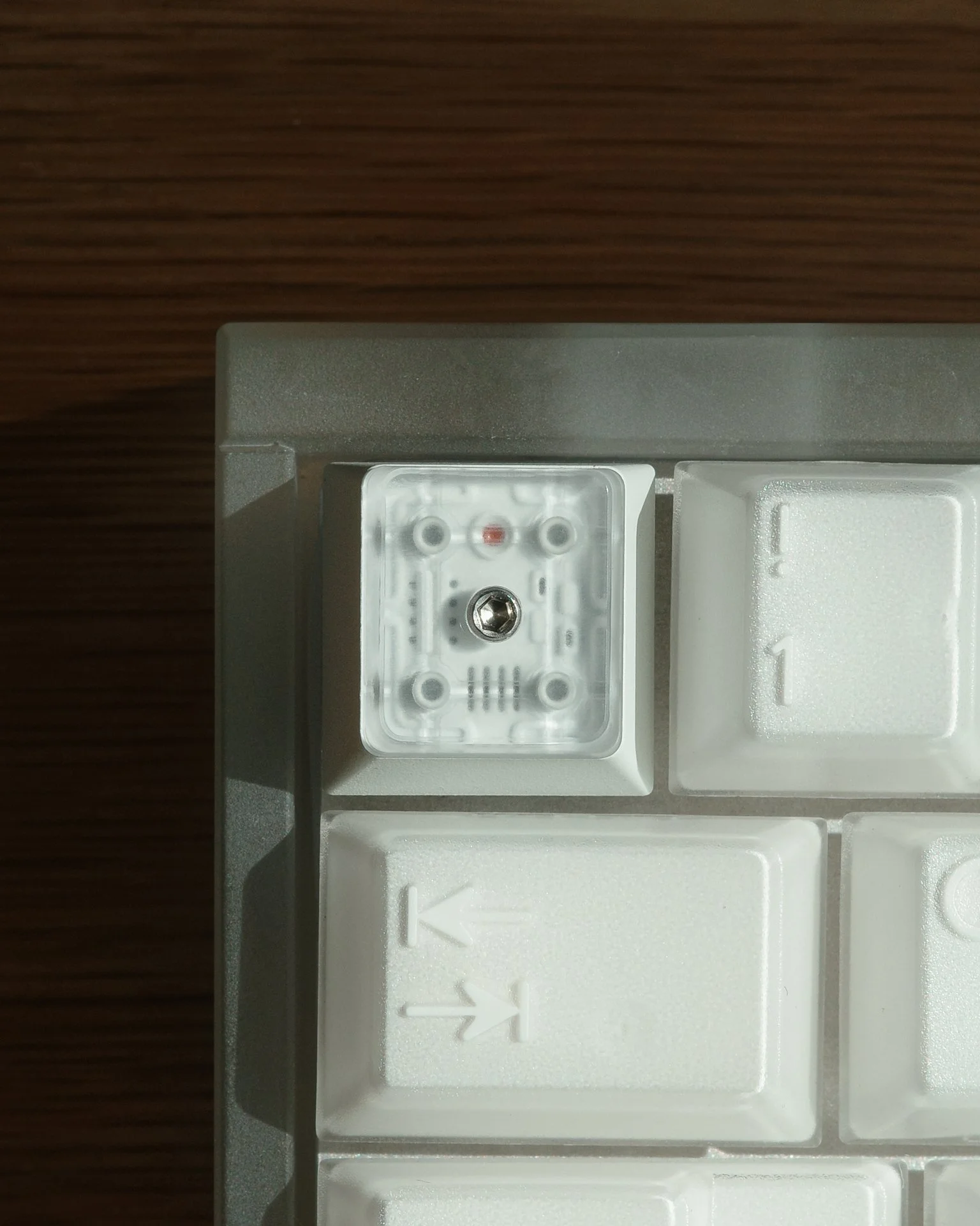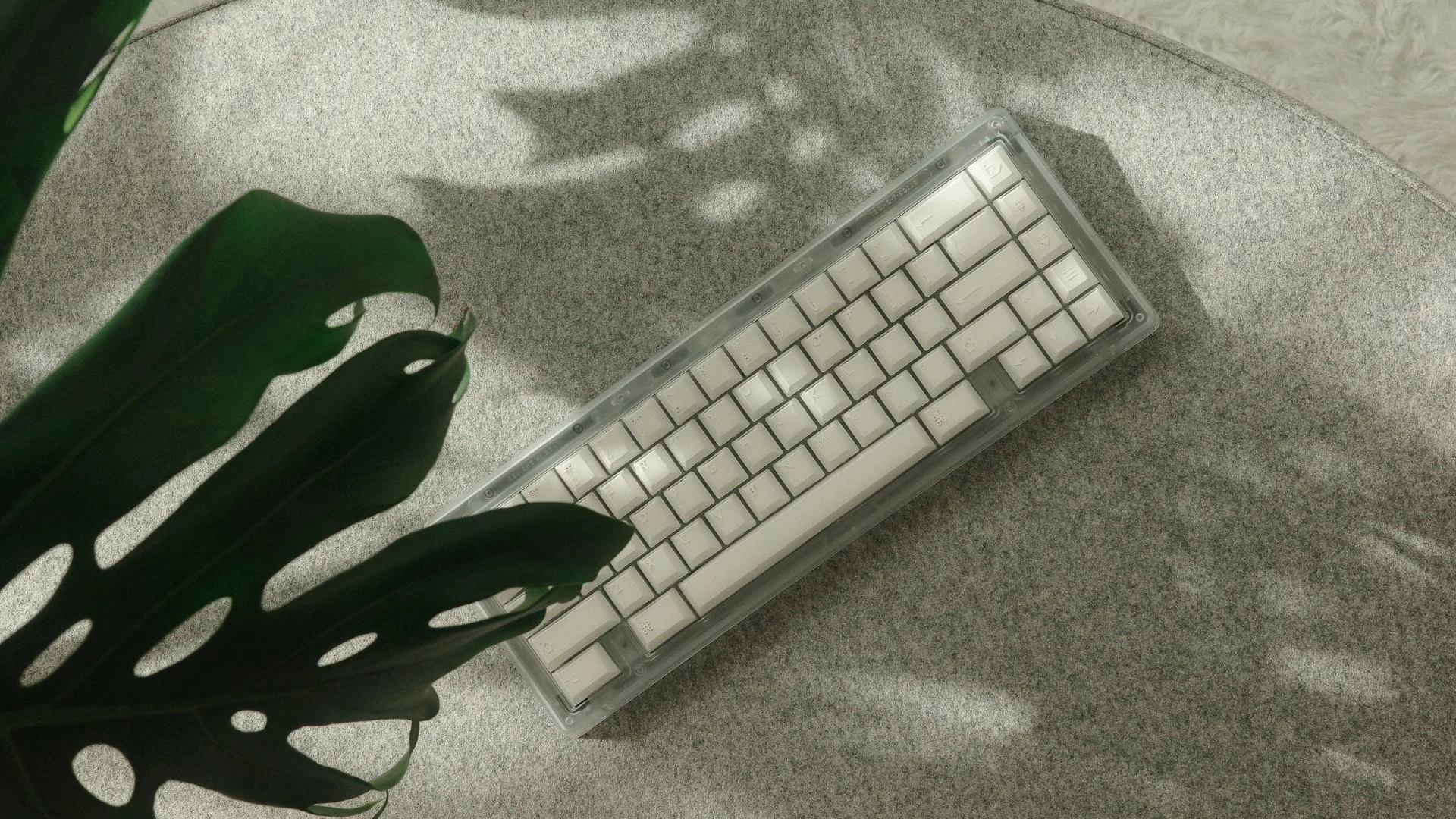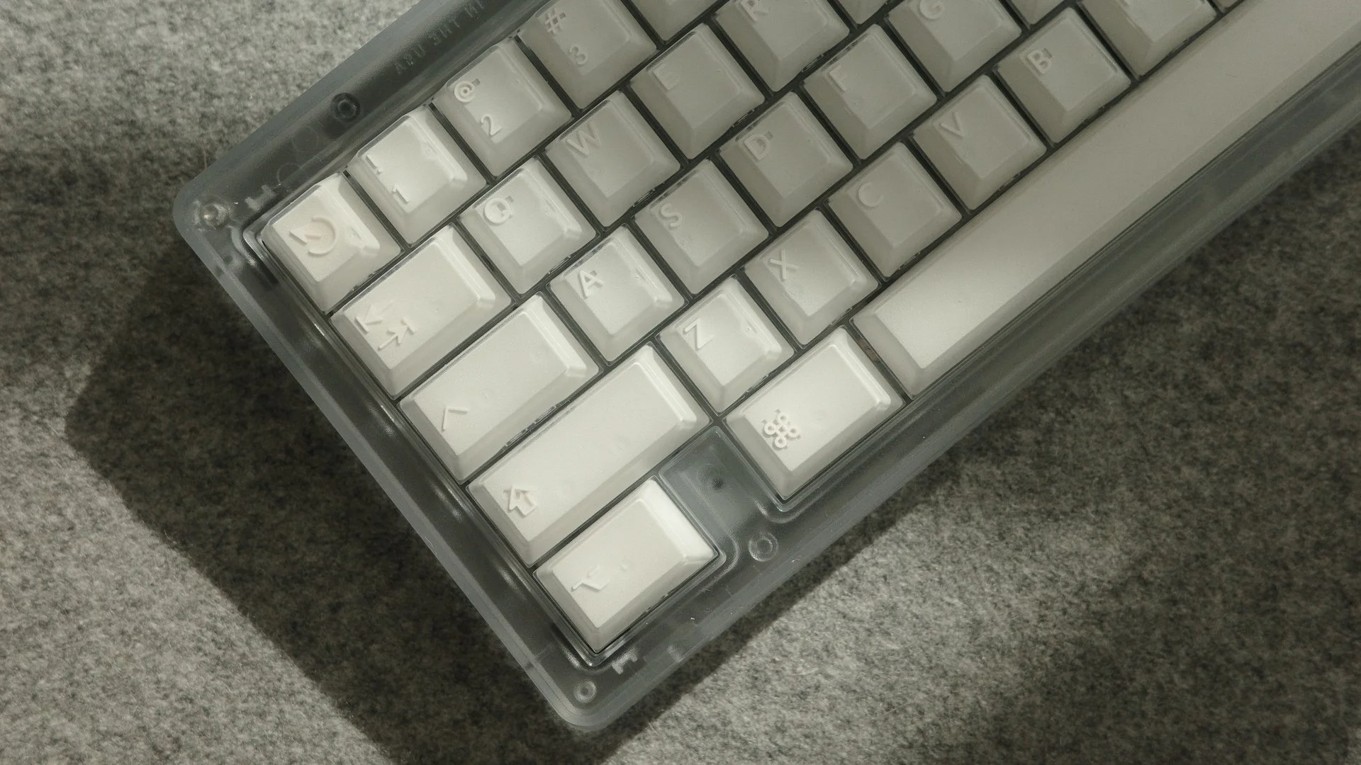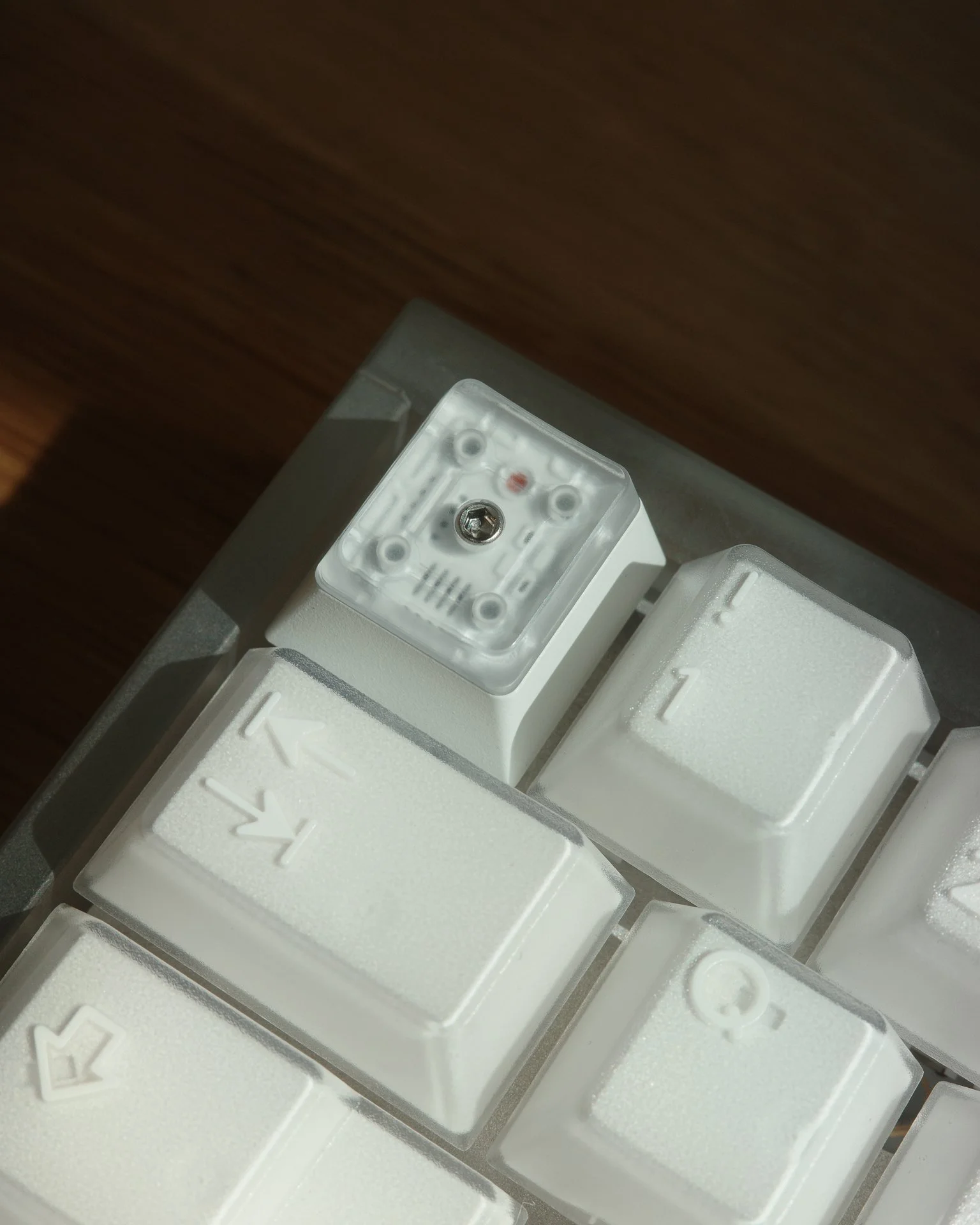 A translucent minimal keycap set inspired by transparent tech accessories.