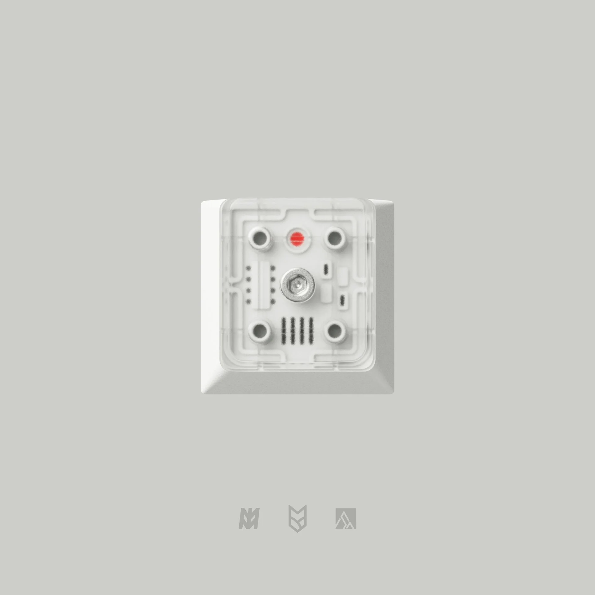 The bottom is made out of machined aluminum with a white powder coating and features some infill details to add a subtle pop of color. The top is delicately machined polycarbonate, held in place with an M1.6 screw. The result is an artisan you've never seen before, a perfect match for the X-Ray keycaps.